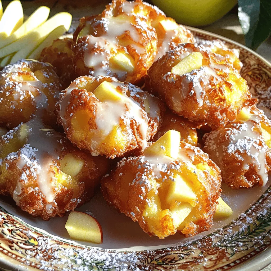 When the fritters are warm, glaze them. You can either drizzle the glaze over the fritters or dip each one into the glaze for full coverage. Let the glaze set for a few minutes before serving. Enjoy the warm, sweet, and apple-filled bites!