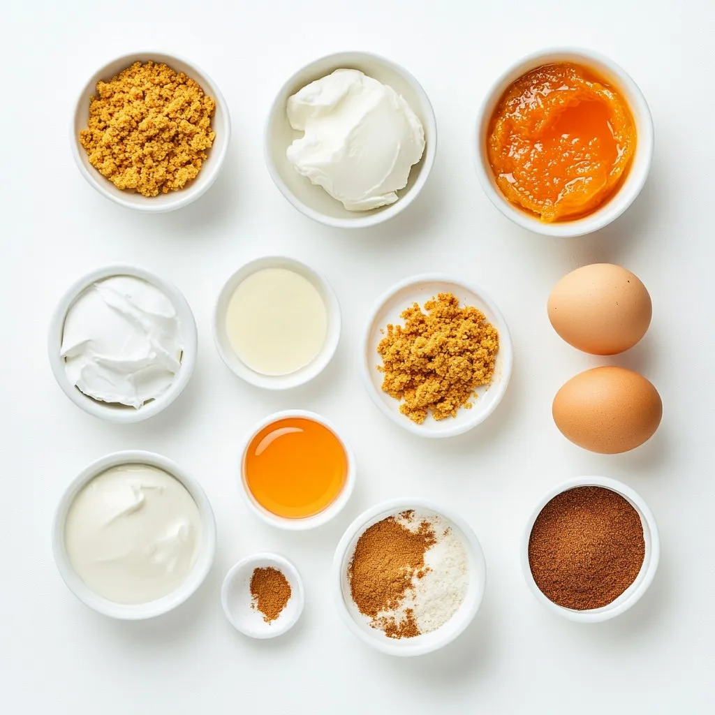 Each ingredient plays an important role in this pumpkin cheesecake. The graham cracker crumbs form a tasty crust. They bring a sweet crunch that balances the creamy filling. The unsalted butter binds the crumbs together and adds richness.