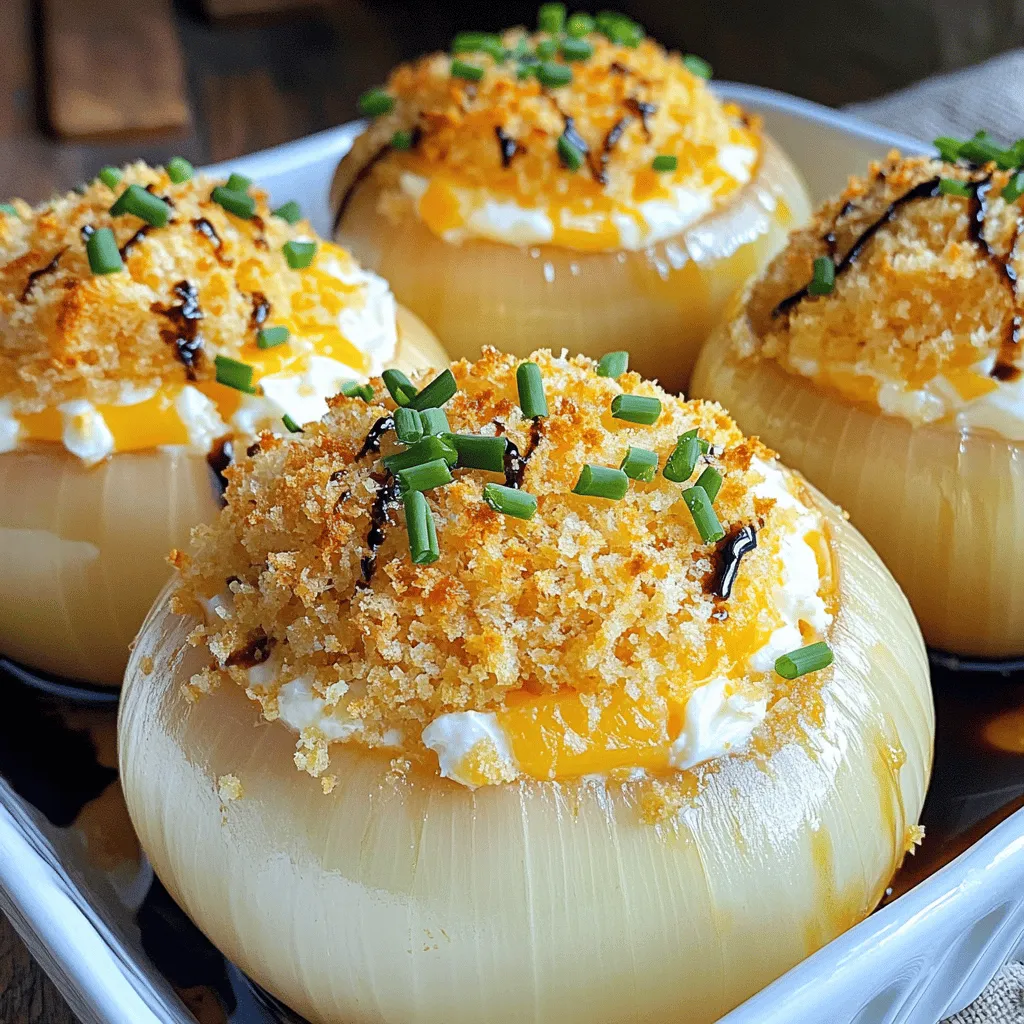 Serve each stuffed onion on a small plate for a nice look. Sprinkle fresh chives on top for color. A drizzle of balsamic reduction adds a touch of elegance. For a fun twist, pair them with a green salad or crusty bread. This makes a great side for grilled meats too.