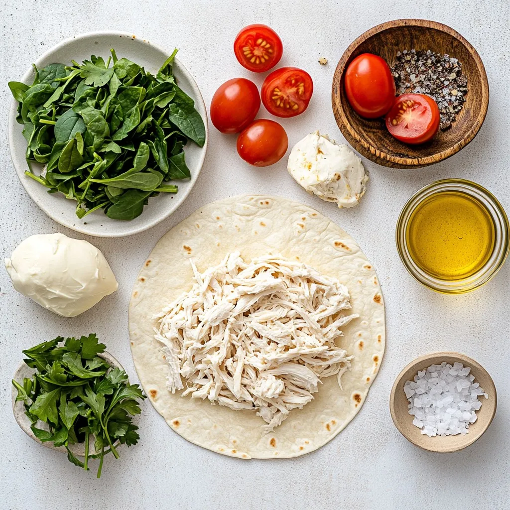 For these Cheesy Garlic Chicken Wraps, you need a few simple ingredients. The chicken and cheese filling is the star of the dish. Shredded chicken gives it a hearty base. Cream cheese adds richness, while mozzarella brings that gooey goodness.