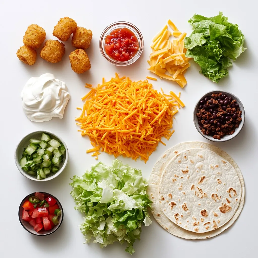To make Cheesy Tater Tot Burritos, gather these main ingredients: