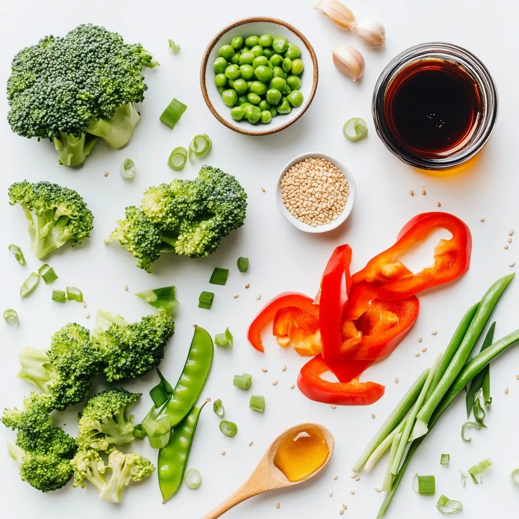 In the same skillet, add a little more sesame oil if needed. Add the minced garlic and grated ginger; sauté for about 30 seconds until fragrant. Add the broccoli florets, sliced red bell pepper, and snap peas. Stir-fry for an additional 4-5 minutes until the vegetables are tender-crisp.