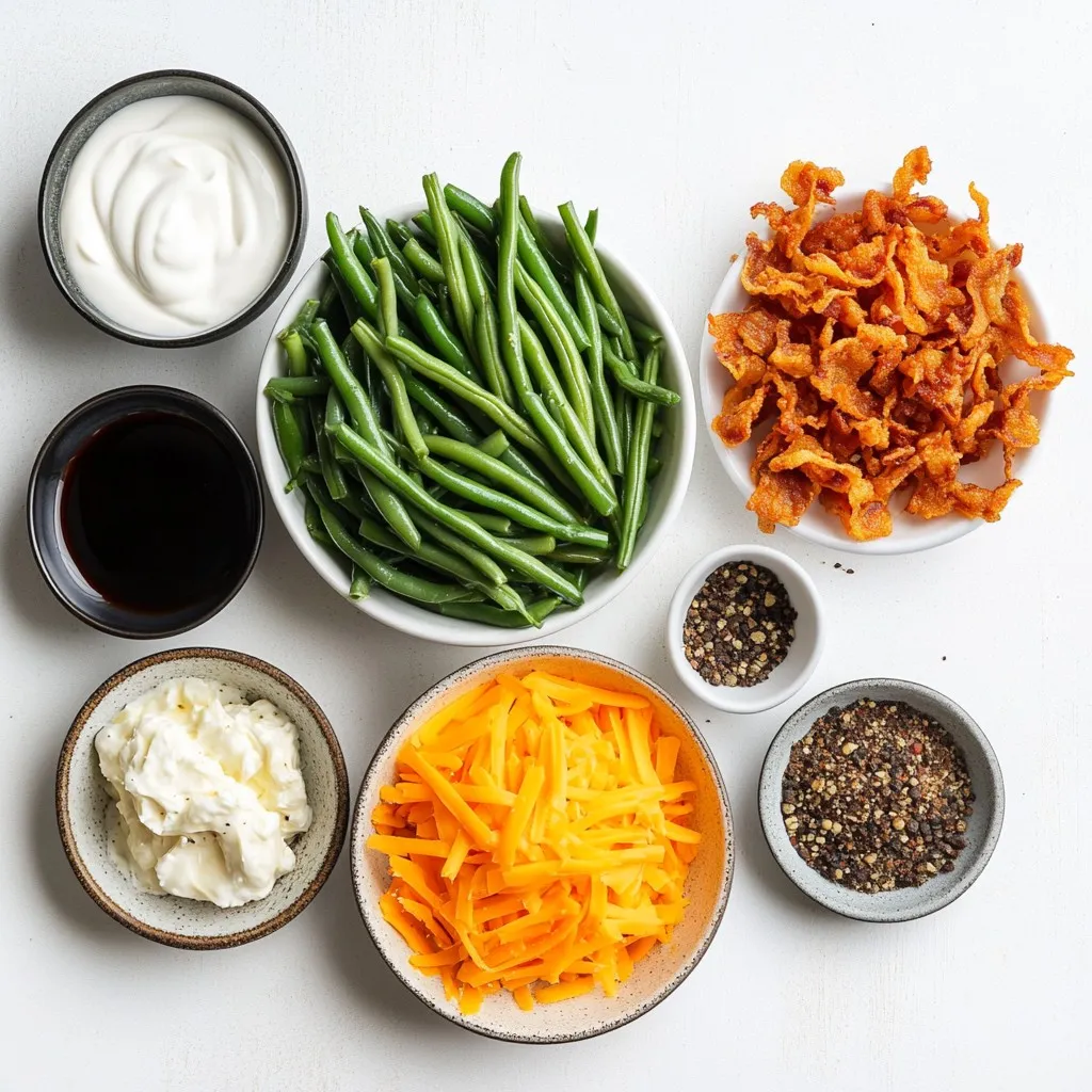 These ingredients create layers of flavor and texture. The green beans provide a fresh crunch, while the creamy mixture adds rich taste. The sharp cheddar cheese melts beautifully, making each bite delightful. Crispy fried onions on top give that added crunch we all love. If you want more flavor, consider adding bacon; it pairs well with the other ingredients.