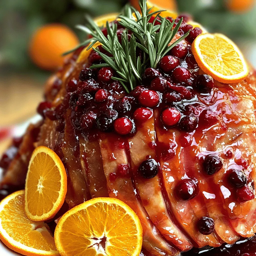 - 6-8 lb fully cooked ham (bone-in or boneless) - 2 cups fresh or frozen cranberries - 1 cup orange juice (preferably freshly squeezed) - Zest of 1 orange - 1 cup brown sugar - 1 teaspoon ground cinnamon - 1/2 teaspoon ground ginger - 1/4 teaspoon ground cloves - 1 cup chicken broth or vegetable broth - 1 tablespoon cornstarch (optional, for thickening) This recipe brings together simple yet vibrant ingredients that create a holiday ham to remember. Start with a ham that weighs between 6 and 8 pounds. Both bone-in and boneless options work well. Next, grab those cranberries. You can use fresh ones or frozen ones if the fresh ones are not available. Orange juice is a key player too. I prefer using freshly squeezed juice for the best taste. Now let’s add some flavor enhancers. The zest of one orange adds a bright kick. Brown sugar sweetens the dish and creates a lovely glaze. Ground cinnamon adds warmth, making it feel festive. For cooking essentials, ground ginger and ground cloves deepen the flavor. You will also need chicken or vegetable broth to keep the ham moist. If you want a thicker sauce, have cornstarch ready. This blend of ingredients makes every bite of ham juicy and flavorful. To get started, score the surface of the ham with a diamond pattern. This means you make shallow cuts across the top. Make sure not to cut too deep into the meat. Scoring helps the flavors seep in and makes the ham more tasty. Now, let’s make the cranberry orange sauce. In a mixing bowl, combine cranberries, orange juice, orange zest, and spices. Add brown sugar, ground cinnamon, ground ginger, and ground cloves to the bowl. Mix everything well until the sugar starts to dissolve. You’ll see a bright and colorful sauce form, and it smells amazing! Next, let’s layer the ham and sauce in the slow cooker. Place the scored ham inside, making sure it fits nicely. Pour the cranberry-orange mixture over the ham, letting it flow down the sides. Pour chicken or vegetable broth around the ham. This will keep it moist while it cooks. Put the lid on the slow cooker and set it to low heat. Cook the ham for about 6-8 hours. You’ll know it’s done when it’s hot and tender. If you want a thicker sauce, you can thicken it later using cornstarch. Using a meat thermometer is key. I recommend checking the thickest part of the ham. The ideal temperature is 140°F (60°C) for fully cooked ham. This ensures that the ham warms up evenly and stays juicy. To boost the taste, try adding spices or fruit. For a warm touch, consider nutmeg or allspice. You might also add apple slices or dried cherries. These additions can create a unique flavor that your guests will love. If you want a thicker sauce, cornstarch is your friend. After cooking, take the juices from the slow cooker. In a small bowl, mix one tablespoon of cornstarch with cold water to form a slurry. Heat the juices in a saucepan, then slowly whisk in the slurry. Continue stirring until the sauce thickens. This quick method makes a rich sauce for your ham. {{image_4}} You can switch things up by adding different fruits. Pineapple and apple slices work great. They add a sweet twist to your ham. Just place them on top of the ham before cooking. This keeps the ham moist and adds a nice flavor. You can also mix in other berries. Blueberries or raspberries can add a fun burst of taste. Experimenting with fruits can take your dish to the next level. Want to give your ham a global flair? Try adding spices like star anise. It gives a warm, sweet flavor. You can also use different types of citrus. Grapefruit or lemon can add a fresh zing. These changes keep the dish exciting and unique. Don't be afraid to play with spices and flavors from around the world. Your ham can be both familiar and new at the same time. You don’t have to stick to the slow cooker. You can also cook your ham in the oven. Just place it in a roasting pan and cover it with foil. Bake it low and slow for a tender result. If you're in a hurry, a pressure cooker can be a great option too. It cooks the ham quickly while keeping it juicy. No matter the method, your ham will shine with flavor. To keep leftover ham fresh, wrap it well. Use plastic wrap or foil. Place it in an airtight container. Store the ham in the fridge for up to four days. For longer storage, freeze the ham. Cut it into slices or chunks before freezing. This helps with thawing later. When frozen, it can last for up to three months. When ready to eat your leftover ham, there are simple ways to reheat it. You can use the oven, microwave, or stovetop. For the oven, preheat it to 325°F. Place the ham in a baking dish, cover it with foil, and heat for about 20 minutes. If you choose the microwave, slice the ham into pieces. Heat on medium power for 2-3 minutes. Check it to make sure it's warm throughout. The stovetop works too! Just add a little broth in a pan, warm it up, and add the ham until hot. Leftover ham is very versatile. You can add it to many dishes. Try making ham and cheese sandwiches for lunch. Dice it up for a hearty breakfast scramble with eggs. You can also toss it into soups or stews for extra flavor. For a quick meal, add it to pasta with veggies. Leftover ham makes a great addition to salads too! To check if the ham is done, look for tenderness. Use a fork to test. If it pulls apart easily, it is ready. The safe internal temperature for ham is 140°F (60°C). You can use a meat thermometer to ensure accuracy. A well-cooked ham should feel warm and juicy. Yes, you can cook a larger ham. Make sure it fits in your slow cooker. If your ham is over 8 pounds, you may need to adjust the cooking time. Add an extra hour for every additional pound. Always check the temperature to ensure it cooks fully. Serve this ham with tasty side dishes. Here are some ideas: - Mashed potatoes - Roasted vegetables - Green bean casserole - Cranberry sauce - Stuffing These sides will enhance the flavors and make your meal festive. Cranberry oran