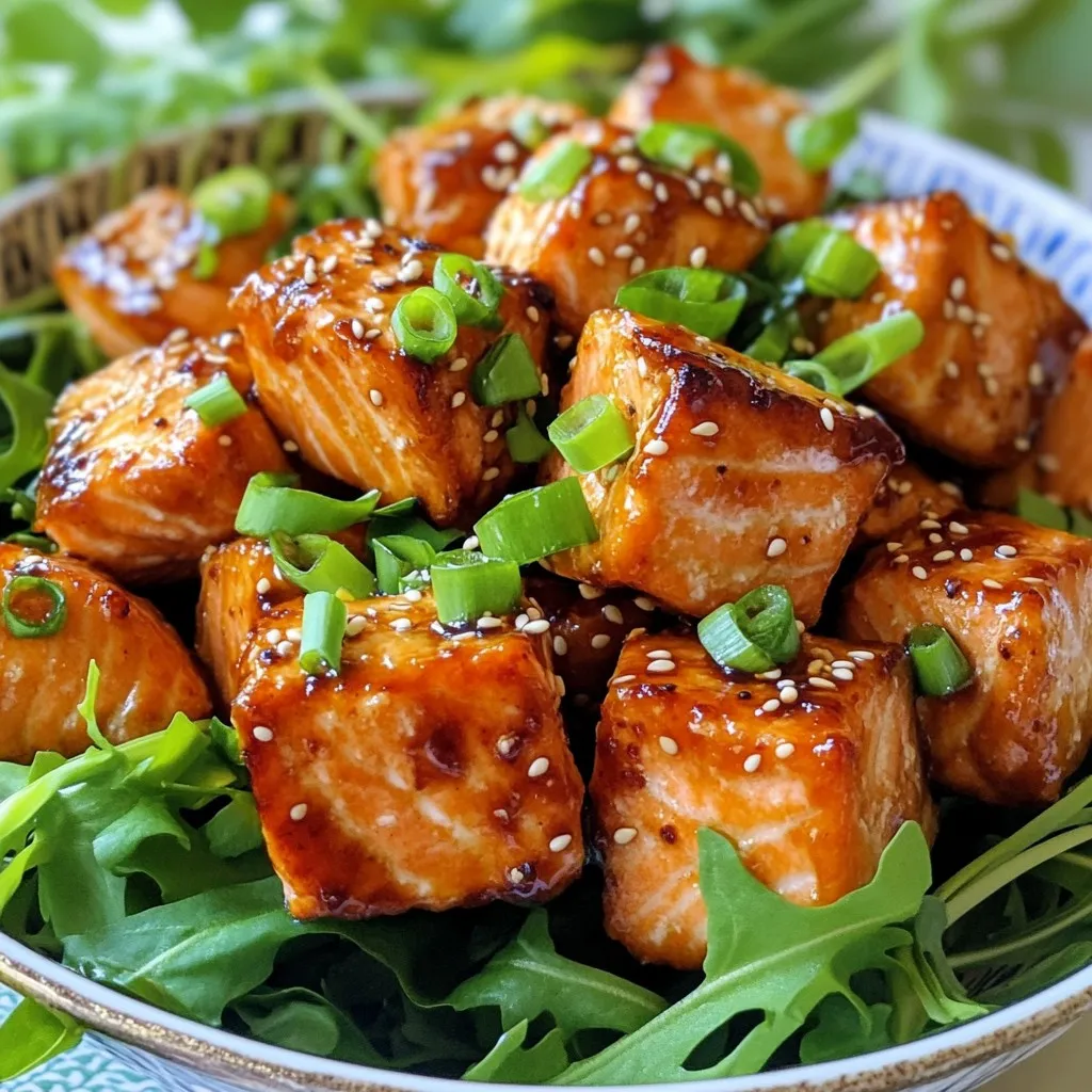 Sprinkling sesame seeds on top adds a nice crunch. The green onions offer a fresh touch and vibrant color. These garnishes enhance both the look and taste of your crispy teriyaki salmon bites.