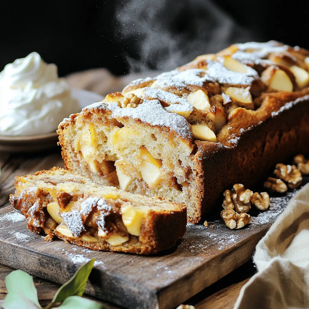 Apples are the star of this recipe. I love using Granny Smith or Honeycrisp apples for their crispness and tang. If you want a crunch, add walnuts or pecans. Finish with a sprinkle of granulated sugar on top for a sweet crust. Each ingredient plays a key role in creating a delicious loaf.