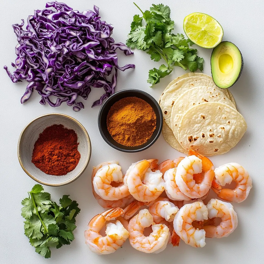The main ingredients for our shrimp tacos are simple and fresh. Start with one pound of large shrimp. Peel and devein them before cooking. This makes them easy to eat. Next, use one tablespoon of olive oil. It helps the spices stick well and gives a nice flavor.