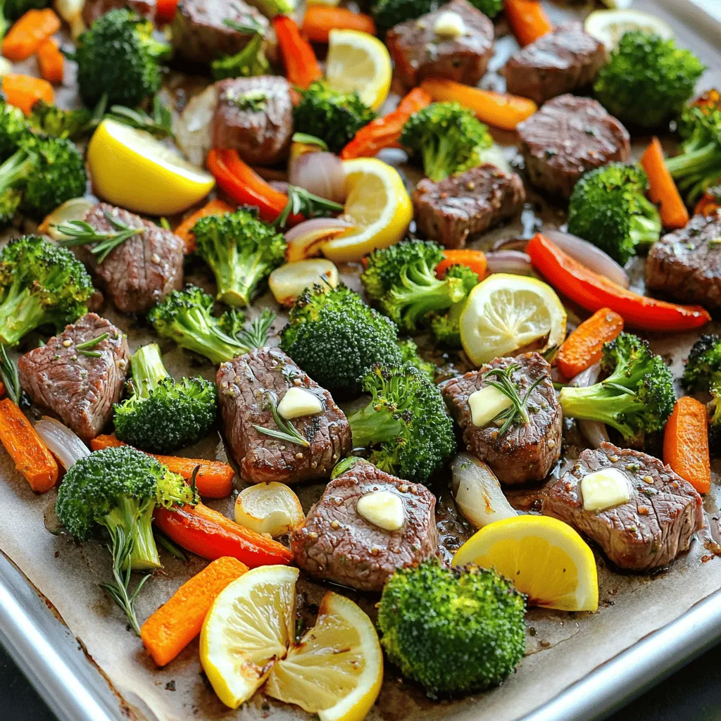 Gather these ingredients before you start. They form the base of your garlic butter steak and veggie sheet pan dish. The sirloin steak offers a rich taste. The vegetables add color and crunch. Each ingredient plays a key role in making this meal both tasty and fun to eat. The garlic butter mixture brings everything together, giving it a savory kick.