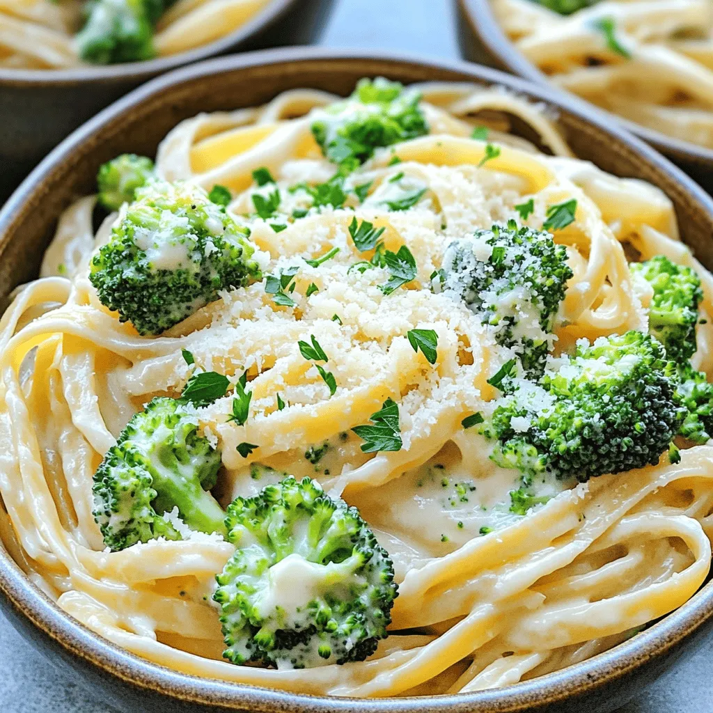 Timing is key for boiling pasta and blanching broccoli. Boil your fettuccine in salted water until al dente, about 8-10 minutes. For broccoli, blanch it for just 3 minutes. It should be bright green and tender. Drain both before mixing.