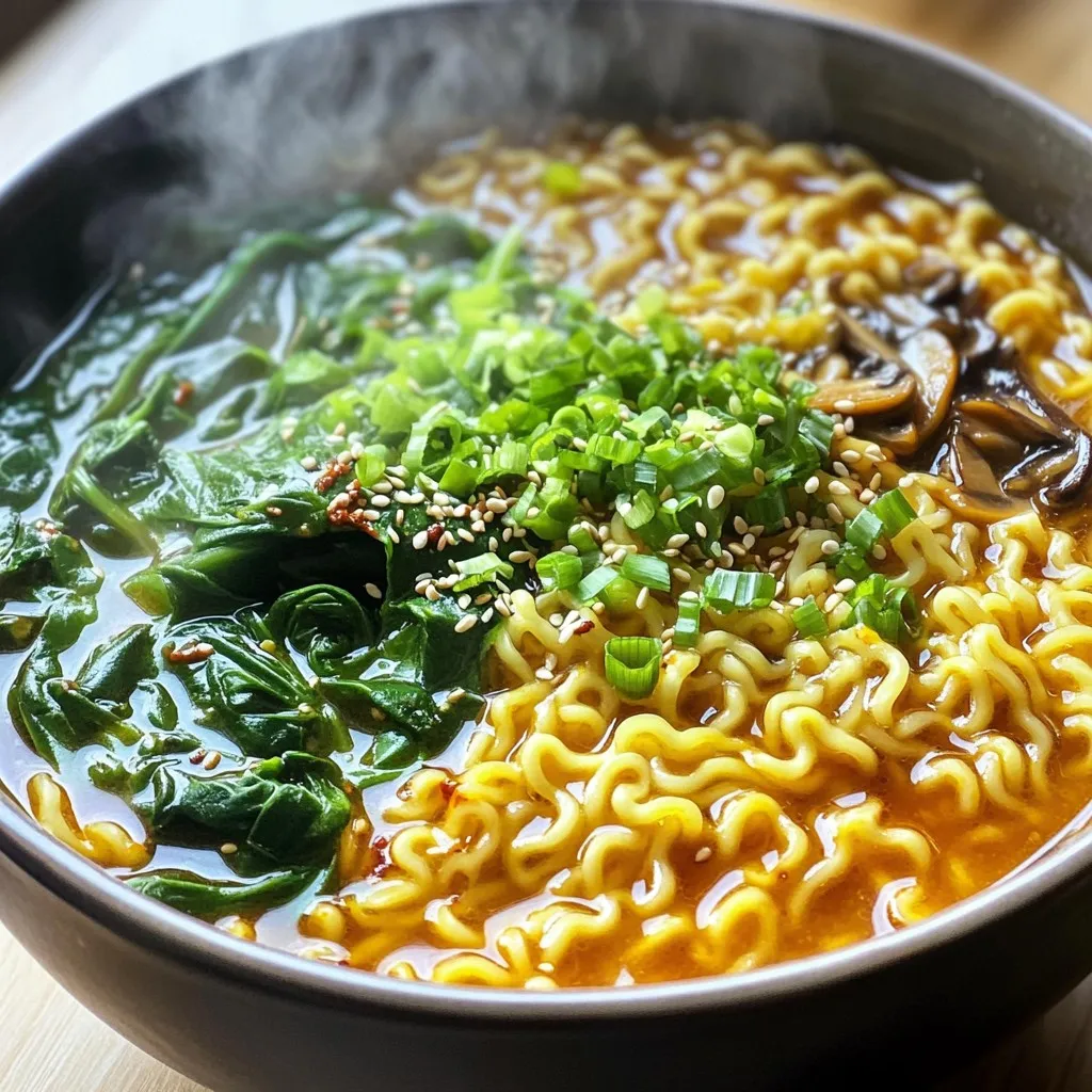 You can easily swap out the spinach and mushrooms. Try using kale instead of spinach. Kale adds a nice crunch. For mushrooms, you can use bell peppers or zucchini. Both will give your ramen a fresh taste. Just chop them into small pieces. Cook them with the garlic and ginger until soft. This change adds color and nutrients to your dish.