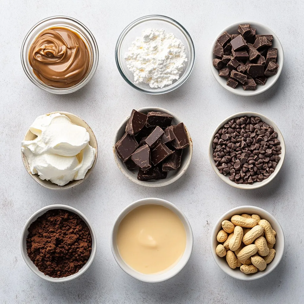 Here’s what you need for the No-Bake Chocolate Peanut Butter Pie. Each ingredient plays a key role in creating that perfect balance of flavor and texture.