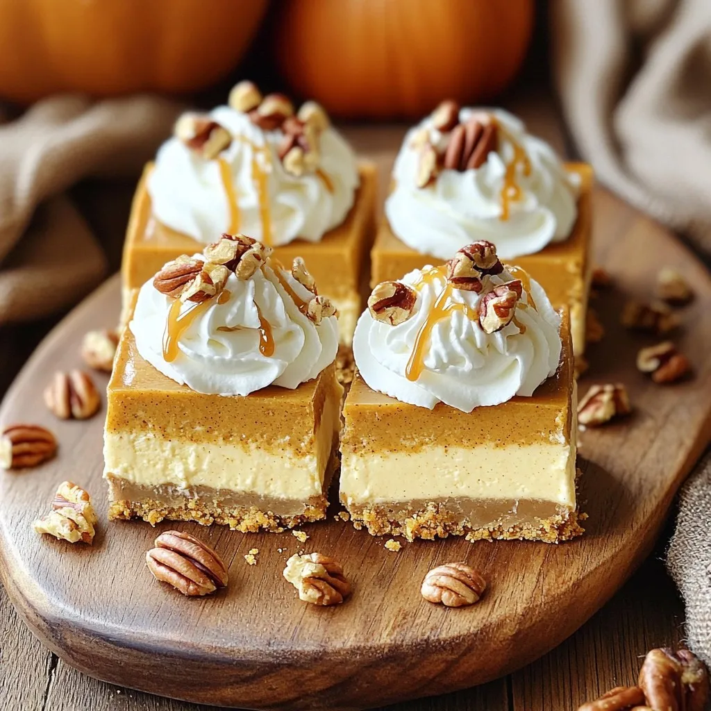 For a stunning look, cut the bars neatly into squares. Arrange them on a nice platter to impress your guests. Top each bar with a dollop of whipped cream. A sprinkle of cinnamon adds a festive touch. Drizzle caramel sauce over the bars for added sweetness. You can also add chopped pecans for crunch. This makes each bite a delightful experience!