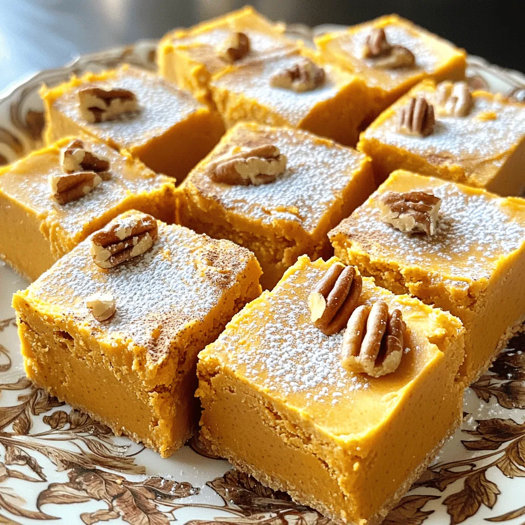 To make Peanut Butter Pumpkin Fudge, you need a few simple ingredients. Here’s the list for you: - 1 cup canned pure pumpkin - 1 cup creamy peanut butter - 1 cup powdered sugar - 1 teaspoon vanilla extract - 1/2 teaspoon pumpkin pie spice - 1/4 teaspoon salt - 1/4 cup chopped pecans or walnuts (optional) Each ingredient plays a key role in creating this rich and creamy treat. The canned pure pumpkin adds moisture and flavor. Creamy peanut butter gives it that smooth, nutty taste. Powdered sugar sweetens the fudge to perfection. Vanilla extract enhances the taste, while pumpkin pie spice adds warmth. A touch of salt balances the flavors. If you like, add chopped nuts for extra crunch. These ingredients come together to create a delightfully creamy fudge that is sure to please. You can find most of these items at your local grocery store. Always choose high-quality ingredients for the best flavor. - Line the dish with parchment paper - Ensure overhang for easy removal Start by preparing your baking dish. Grab an 8x8-inch dish and line it with parchment paper. Make sure the paper hangs over the edges. This helps you lift the fudge out later. - Combine pumpkin and peanut butter - Blend until smooth Next, mix the main ingredients. In a large bowl, combine 1 cup of canned pumpkin and 1 cup of creamy peanut butter. Use a spatula or an electric mixer to blend until smooth. This should be creamy and well-mixed. - Incorporate powdered sugar - Mix in vanilla extract and spices Now, add some sweetness! Slowly mix in 1 cup of powdered sugar. Keep stirring until the mixture is thick and creamy. Then, add 1 teaspoon of vanilla extract, 1/2 teaspoon of pumpkin pie spice, and 1/4 teaspoon of salt. Stir well to combine all the flavors. - Fold in optional nuts - Pour and spread mixture into dish If you want some crunch, fold in 1/4 cup of chopped pecans or walnuts now. This adds a nice texture. Carefully pour the fudge mixture into the lined baking dish. Use a spatula to spread it evenly in the dish. - Cover and refrigerate - Allow time to set Now it's time to chill! Cover the dish with plastic wrap or foil. Place it in the refrigerator and let it chill for at least 2 hours. This helps the fudge set nicely. - Lift from dish for cutting - Optional presentation tips Once set, lift the fudge out of the dish by grabbing the parchment paper edges. Place it on a cutting board and cut it into squares. For a fancy touch, arrange the squares on a nice plate. You can dust them with powdered sugar or sprinkle more pumpkin pie spice on top. Enjoy your tasty treat! To get the best fudge, you need to avoid lumps in the mixture. Start by mixing the pumpkin and peanut butter well. Use a spatula or mixer to ensure a smooth blend. Next, chill the fudge for the recommended time. This helps it set properly. If you skip this step, your fudge may not firm up as expected. You can adjust the pumpkin pie spice to your liking. If you love a strong spice flavor, add a bit more. It can change the whole taste! Also, consider trying different nut toppings. Chopped pecans or walnuts add a nice crunch. You can also use almonds or hazelnuts if you prefer. This fudge pairs wonderfully with warm drinks. A cup of hot cocoa or coffee complements the flavors. You can also use it as a dessert or snack. Enjoy it after dinner or as a treat during the day. Serve it on a nice plate and impress your friends! {{image_4}} You can easily switch the peanut butter for other nut butters. Almond butter offers a rich, nutty flavor. Cashew butter gives a creamier texture. Both options work great in this fudge. Try these swaps to match your taste or dietary needs. Want to make this fudge vegan? Substitute the powdered sugar with coconut sugar. This swap keeps it sweet while adding a hint of caramel flavor. Coconut sugar is also a great natural choice for those avoiding refined sugar. Looking for a fun twist? Add a chocolate swirl to the fudge before it sets. Just melt some chocolate and swirl it in with a knife. You could also mix in a bit of espresso powder for a coffee kick. Both options elevate the fudge and add depth to the flavor. To keep your peanut butter pumpkin fudge fresh, store it in an airtight container. This will prevent moisture and air from ruining its texture. Next, make sure to keep it in the refrigerator. This cool environment helps maintain its creamy goodness. How long does it last? When stored properly, the fudge can last about one week in the fridge. If you want to enjoy it longer, freezing is a great option. For freezing, cut the fudge into squares first. Then, wrap each piece in plastic wrap. Place the wrapped pieces in a freezer-safe bag or container. To thaw, take it out of the freezer and let it sit in the fridge for a few hours. This keeps the fudge nice and smooth. Yes, you can use fresh pumpkin. First, cook and puree the pumpkin until smooth. This homemade version may alter the texture and flavor slightly. Canned pumpkin simplifies the process and ensures a consistent taste. Yes, this recipe is gluten-free. All the ingredients, like peanut butter and powdered sugar, are naturally gluten-free. Always check labels to confirm that no gluten-containing additives are present. The fudge is set when it feels firm to the touch. It should not be sticky or soft. After chilling for at least two hours, test it by gently pressing the top. If it holds its shape, it's ready! Store leftovers in an airtight container in the fridge. This fudge can last up to a week. For longer storage, you can freeze it. Just wrap the fudge tightly in plastic wrap and place it in a freezer-safe bag. This blog post shared how to make pumpkin peanut butter fudge. We covered the ingredients, step-by-step instructions, tips for perfect texture, storage methods, and some tasty variations. Whether you choose nuts or different nut butters, this fudge is easy and fun to make. Remember to chill it well for the best texture. With these tips, you can enjoy a delicious tre