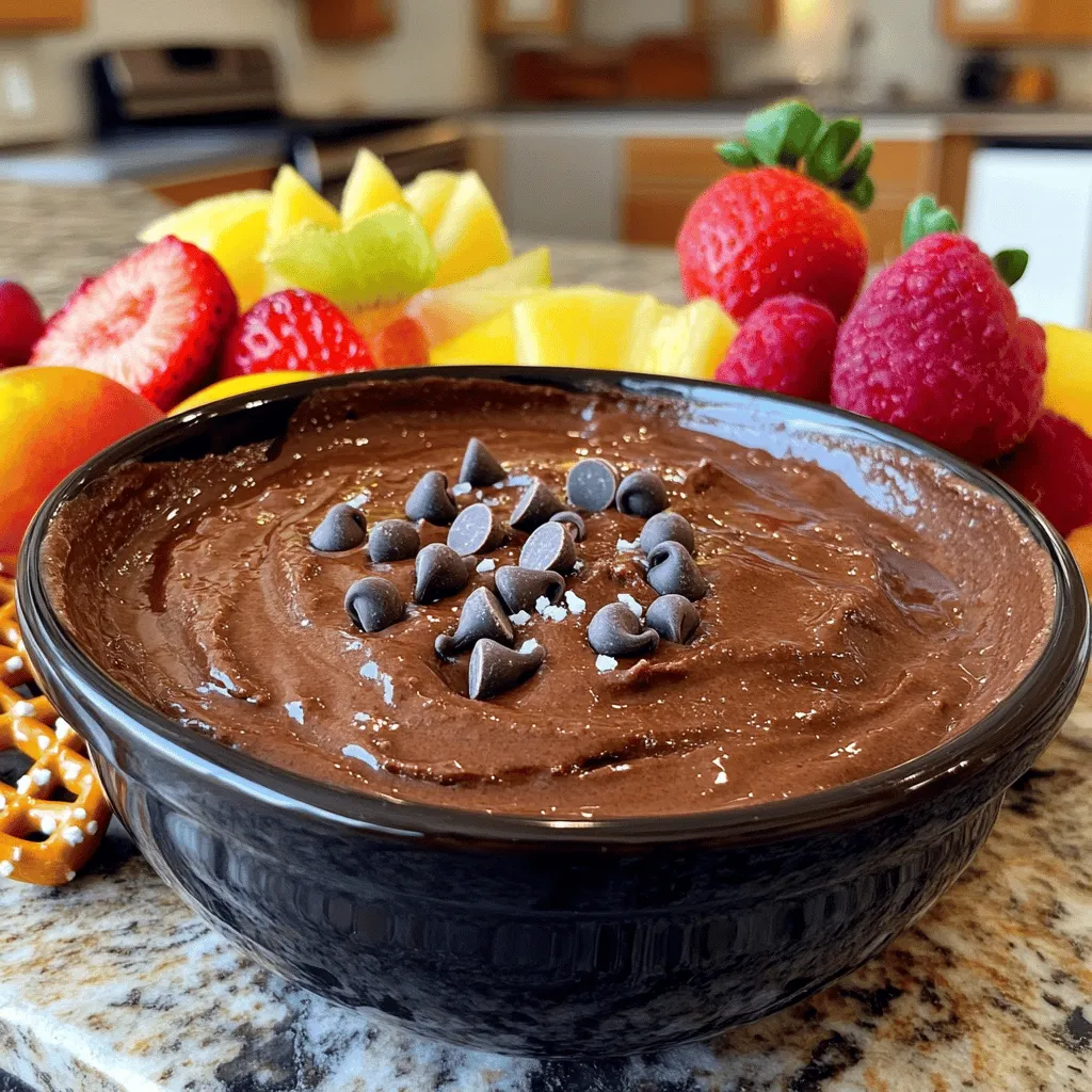 The main ingredients in this dip create a rich, chocolatey flavor. Greek yogurt gives a creamy base. Cocoa powder adds deep chocolate taste. Honey or maple syrup sweetens it naturally. Chocolate protein powder boosts the dip with extra protein. Vanilla extract gives a warm, sweet aroma. Almond butter adds richness, while sea salt balances flavors.