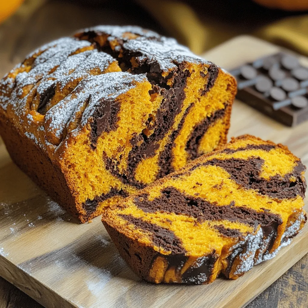 This Pumpkin Chocolate Marble Bread is not just tasty; it’s simple too. You start with basic ingredients. You need pumpkin puree, which gives it a moist texture. Brown sugar adds a rich flavor, while granulated sugar gives sweetness. Vegetable oil keeps the bread soft. Eggs and vanilla extract help bind everything together and add taste.