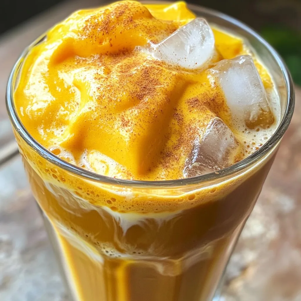 7. Add the Pumpkin Cold Foam: Spoon the pumpkin foam on top of the coffee.