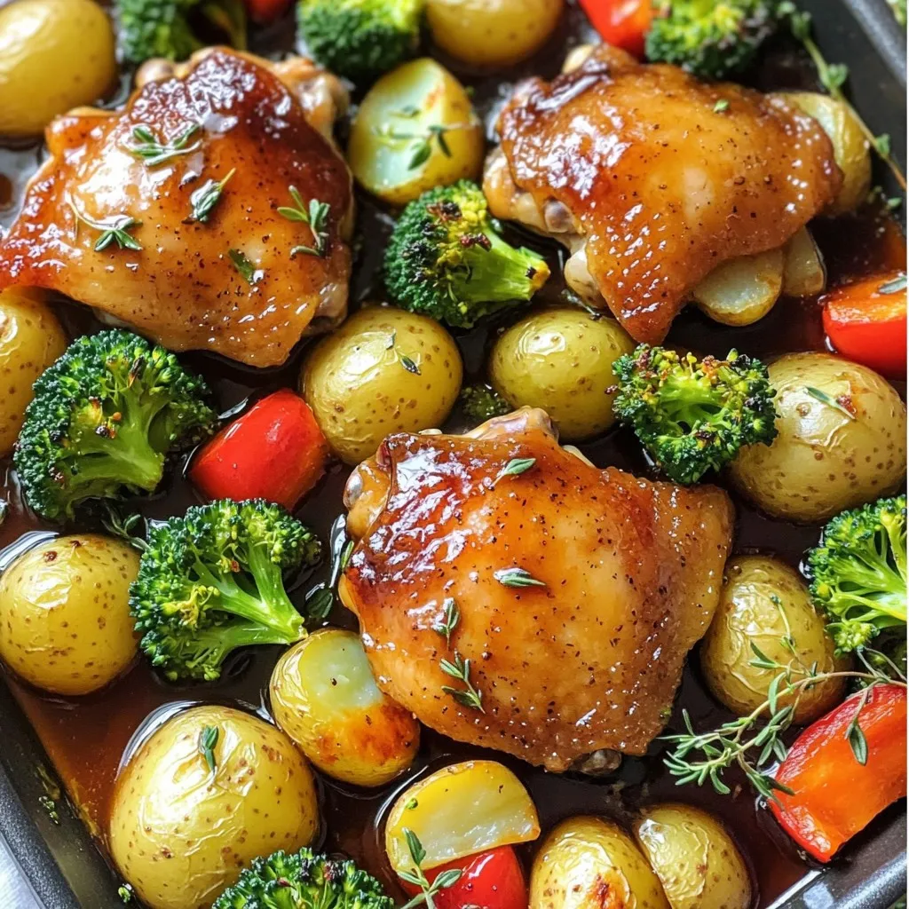 This recipe combines chicken thighs, fresh veggies, and a simple marinade. You learned how to roast the dish and achieve a tasty meal. Remember to rest the dish after cooking for the best flavor.