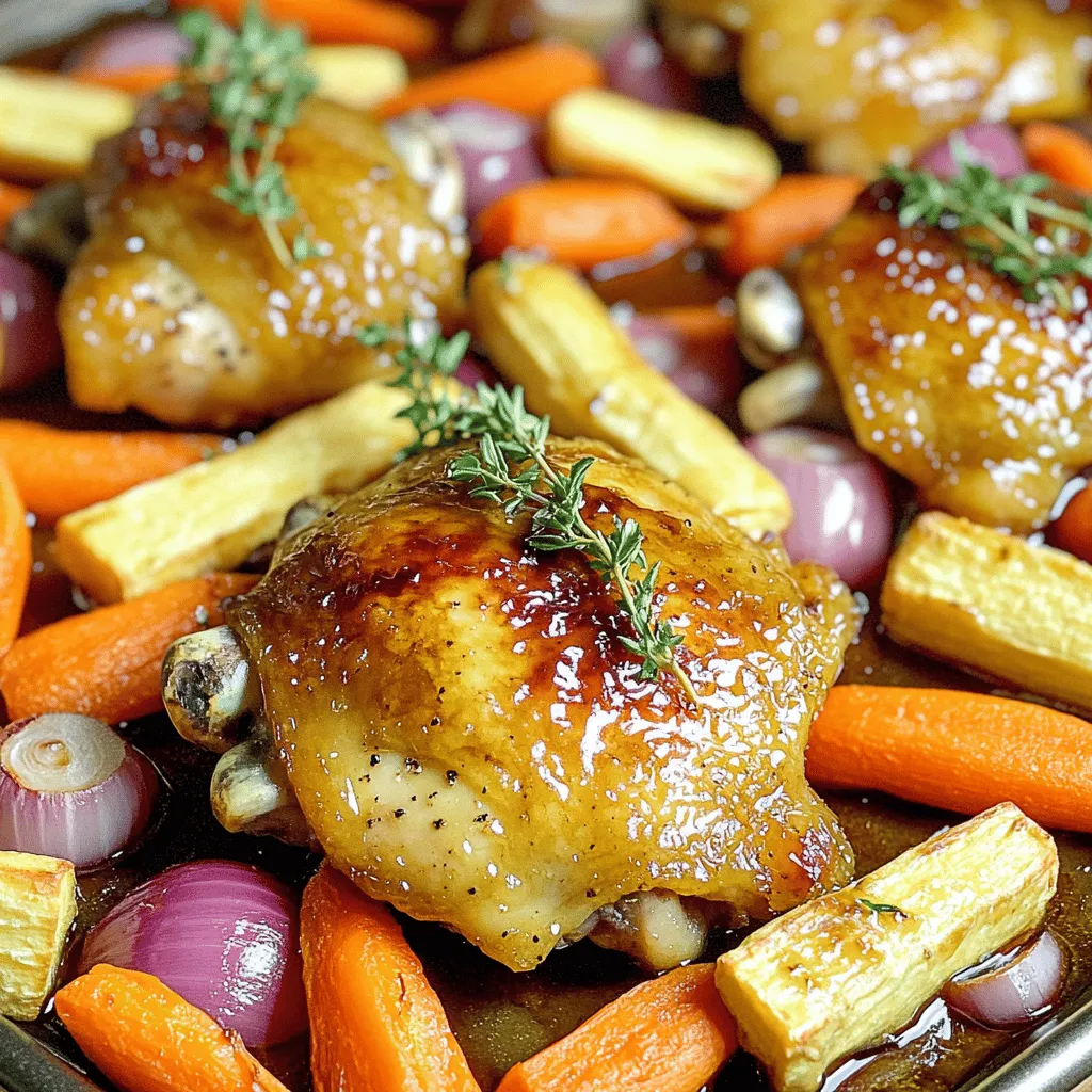 These ingredients work together to create a sweet and savory flavor. The chicken thighs provide juiciness, while the vegetables add color and texture.
