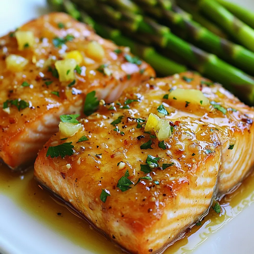 Serve your salmon on a colorful plate. A bed of steamed asparagus looks great. You can also add a mixed green salad for freshness. Drizzle leftover sauce on top for a nice touch. Sprinkle fresh parsley for color. A lemon wedge adds a pop of brightness.